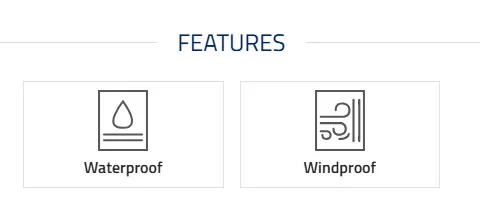 Toiminto | Veden- ja tuulenpitävä |