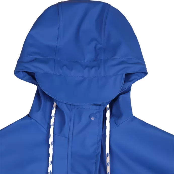 Sadetakin muotoilu on myös vedenpitävä. Esimerkiksi takin vetoketjun edessä on käytännöllinen myrskyläppä, joka auttaa pitämään veden loitolla itse vetoketjusta. Hattuosan kokoa voidaan säätää eri pään ympärysmittojen mukaan, ja leveä reuna suojaa tehokkaasti sateelta.