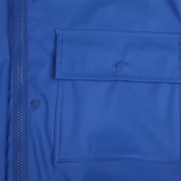 Siinä on kiinteä huppu, jossa on kiristysnyöri ja reunus, jotka pitävät sateen poissa, sekä kaksi suurta taskua lasten kortteja, pieniä leluja ja muita pieniä esineitä varten. Klassinen sadetakki suurempina koossa lapsille ja junioreille. Täydellinen sateiseen koulupäivään tai ulkoiluun. 100 % polyuretaania.